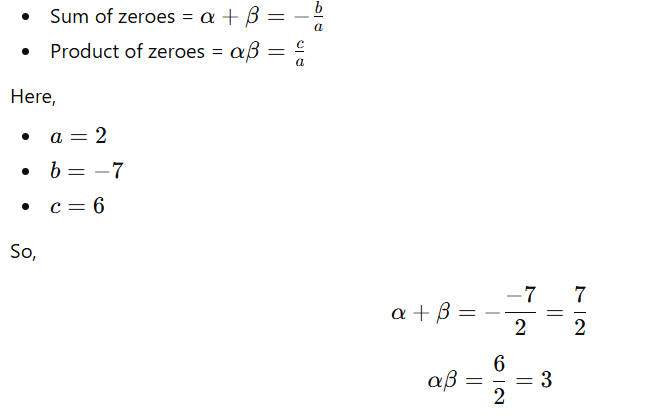 If the zeroes of the polynomial p(x) = 2×2 – 7x + 6 is are α and β, then the then the value of 1/α + 1/β :